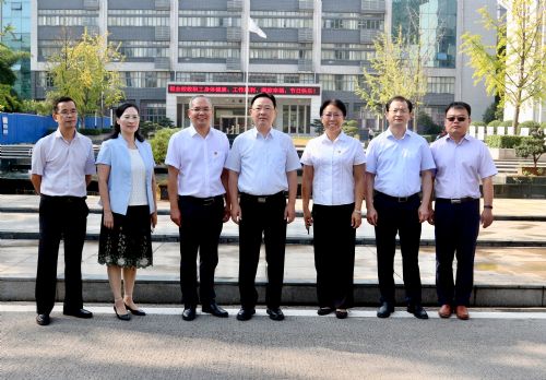 市委书记董卫民(左四),市委常委、宣传部长钟丽萍(左二),市委常委、常务副市长徐继祥(右二)与学校领导亲切合影
