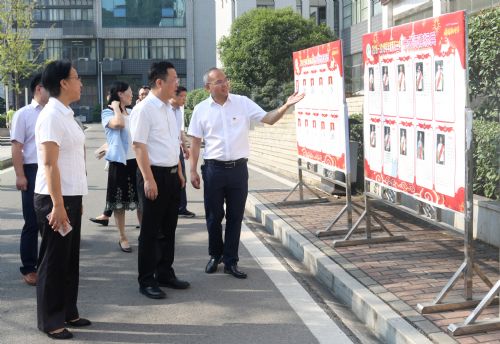 董卫民书记饶有兴致地观看学校教师节宣传展板
