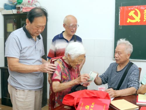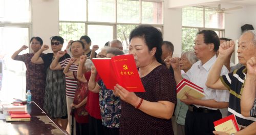 张海霞书记代表学校为离休教师文武斌颁发了“庆祝中华人民共和国成立70周年纪念章”,给离退休党支部的党员发放了学习资料、学习笔记本和党员手册,全体离退休党员一起重温了入党誓词,缴纳了党费。与会领导还认真听取了老同志们对学校工作的意见和建议,并对相关问题做了政策解答,对一时不能解决的问题也做了耐心的解释说明,大家满意而归。