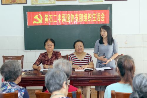 9月25日上午,黄石二中在老校生活区召开了离退休教职工会议,会议由学校离退休党支部书记叶惠兰主持,校党委书记张海霞,党委副书记、纪委书记、工会主席肖雨荻,党政办副主任周丽平参加了会议。