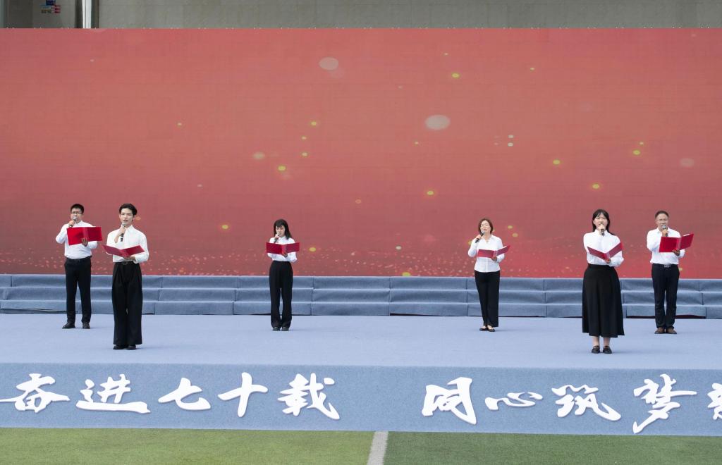 党委书记周学君主持大会,他表示,七十年风雨兼程,是代代学人用坚守与奋斗,铸就了黄石二中今日的成就与辉煌。新征程已在脚下,未来的灿烂篇章,需要全体二中人以砥砺奋进的姿态携手书写。他号召大家同心聚力、勇毅前行,共同开创学校更加美好灿烂的明天。