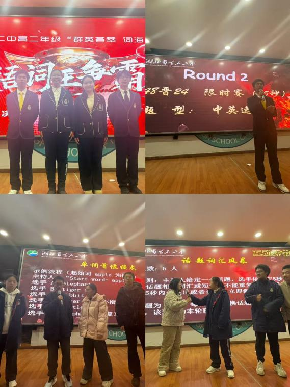 为激发学生英语学习热情,12月16日下午,我校高二年级举办以“群英荟萃,词海拾贝”为主题的英语词王争霸赛。本次赛事集知识性、趣味性与竞技性于一体,为同学们搭建了一个展示词汇积累、锻炼心理素质、提升综合能力的舞台。