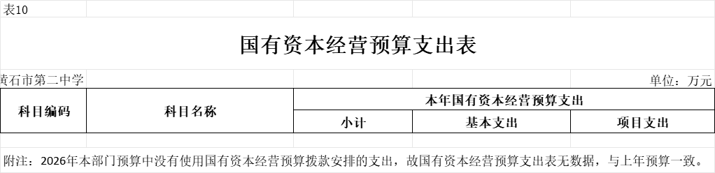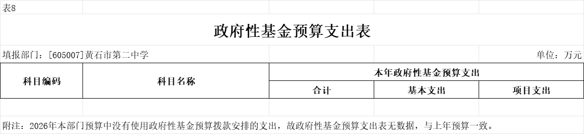 2026年本单位预算中没有使用政府性基金预算拨款安排的支出,故政府性基金预算支出表无数据,与上年一致。2026年本单位预算中没有使用国有资本经营预算拨款安排的支出,故国有资本经营预算支出表无数据,与上年一致。