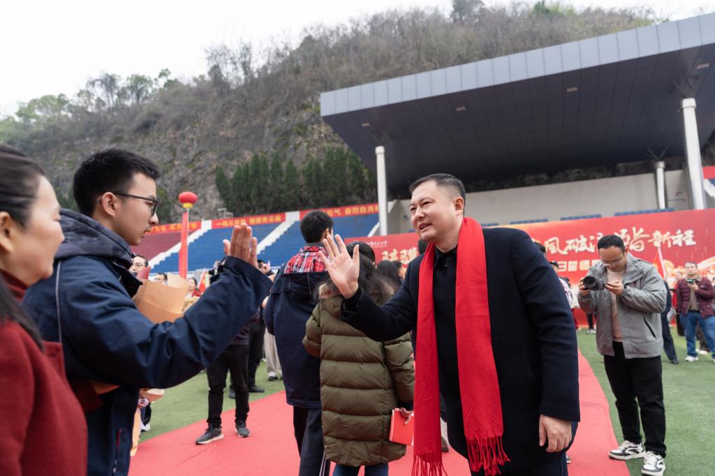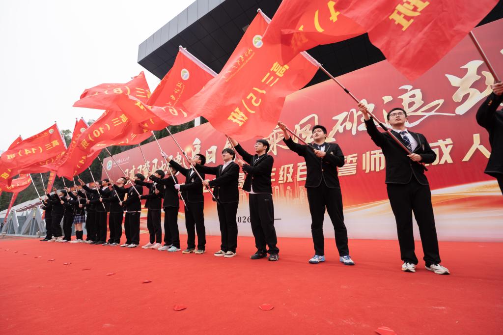 紧接着,班主任们为各班授旗。整个运动场化作红色的海洋,旗手们用力挥舞旗帜,奏响了出征的最强音!