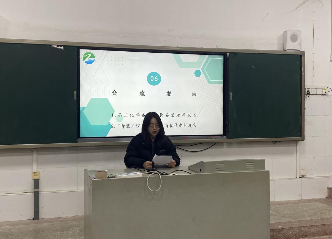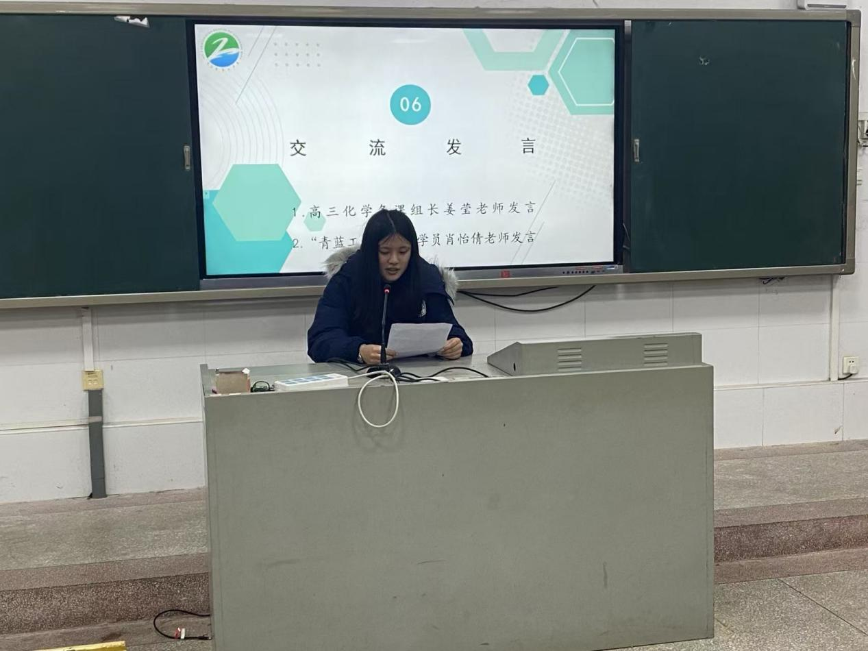 会议对上学期表现突出的优秀备课组进行了表彰,并公布了“青蓝工程”学员上学期听课情况,评选出优秀指导教师与学员。高三化学备课组长姜莹和“青蓝工程”优秀学员代表肖怡倩分别上台,分享了她们在团队建设、教学研讨和师徒结对学习过程中的经验与心得。