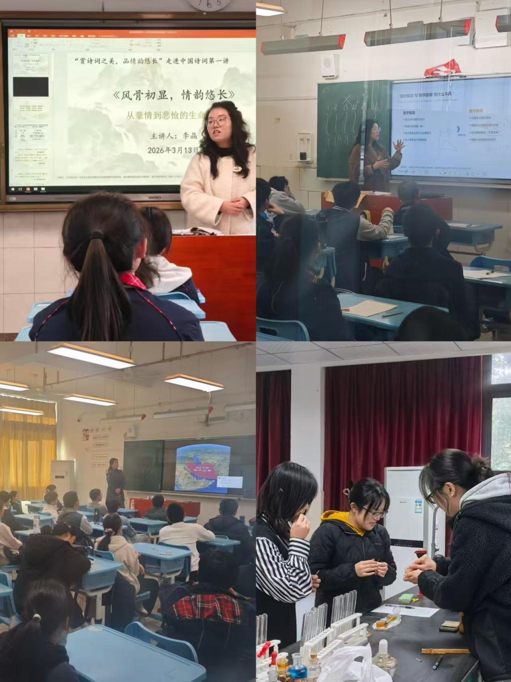 周五下午,校园迎来轻松而充实的校本时光。同学们根据自身学习需求与兴趣方向,走进不同学科课堂,在学科老师的带领下开展深度学习。语文课堂品读诗词经典、感受诗词魅力,涵养文思,在千年诗韵中传承中华文脉;数学课堂强化思维、突破难点;外语课堂拓展视野,提升用英语讲好中国故事的能力;化学、生物立足实验与原理,串联学科知识与生活实践,深化知识理解,培养科学探究能力;政治、历史、地理贯通古今中外,培育家国情怀与人文素养;心理健康课程关注心灵成长,引导学生调适心态,阳光前行。