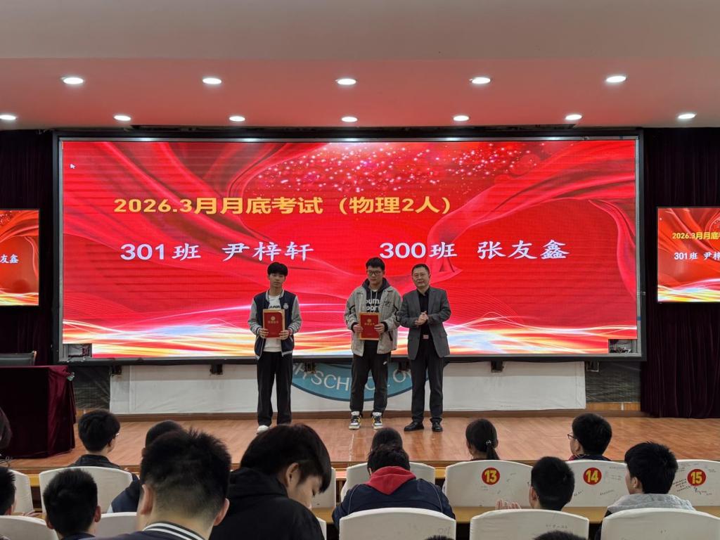 春意盎然,芳华待灼;追风逐梦,不负韶华。本次表扬大会,既是对优秀学子的嘉奖与肯定,更是对学子们的鼓舞与鞭策。愿全体同学在最后的冲刺时光中奋勇拼搏、全力以赴,在2026年高考中再创佳绩,绽放属于自己的青春光彩!